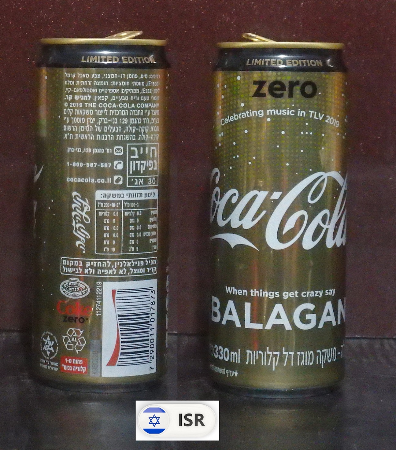 2019 Coke Zero 'TLV Eurovision - get crazy' 330ml sleek