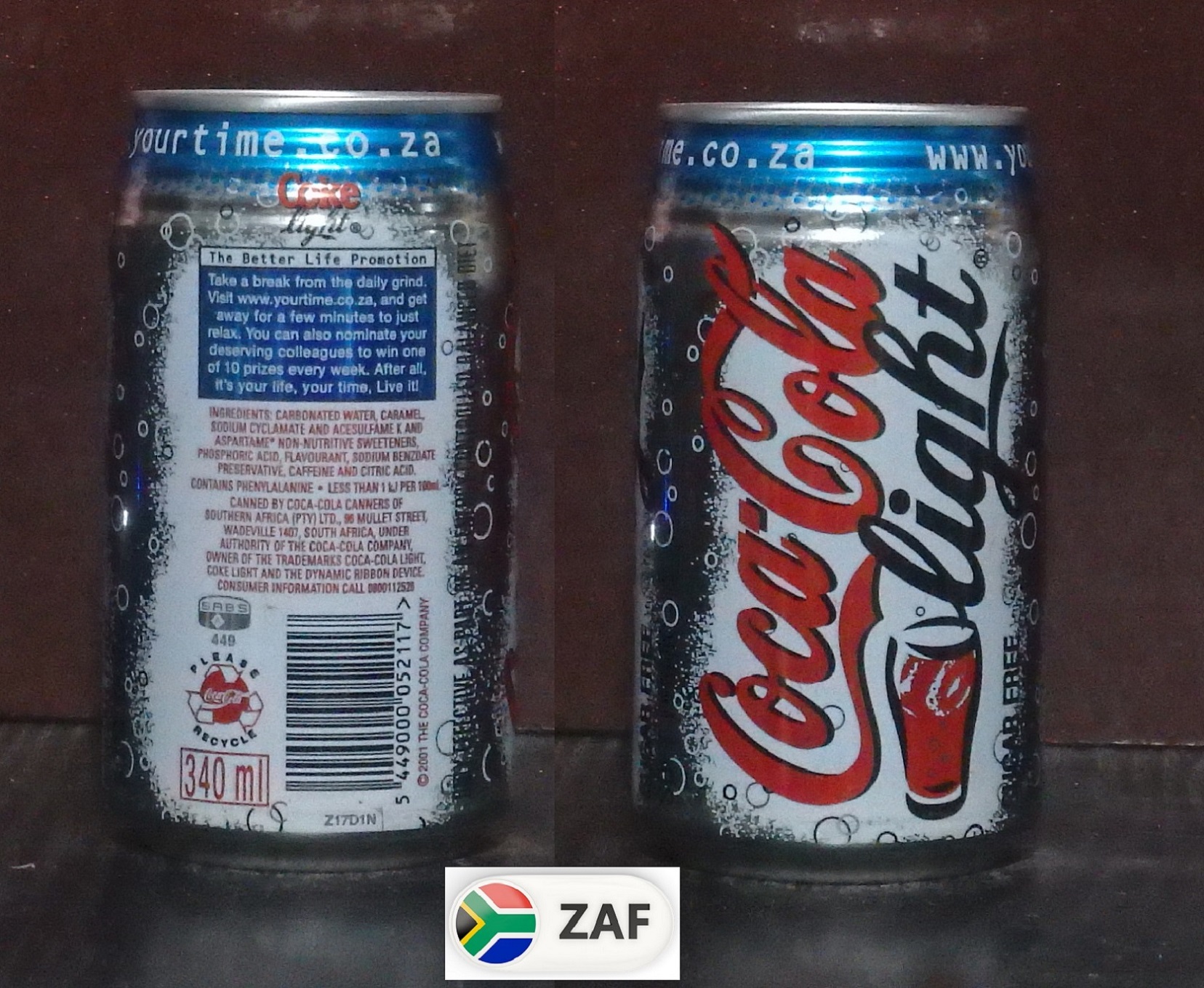 2002 Diet Coke 'www.yourtime.co.za' 340ml