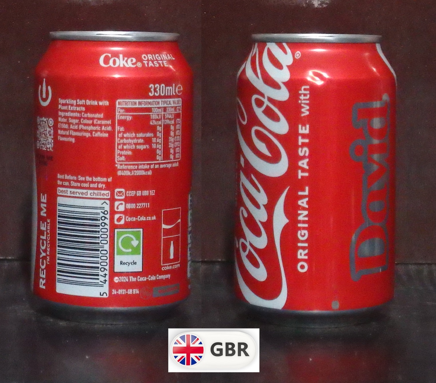2025 Coke 'Share with David' 330ml