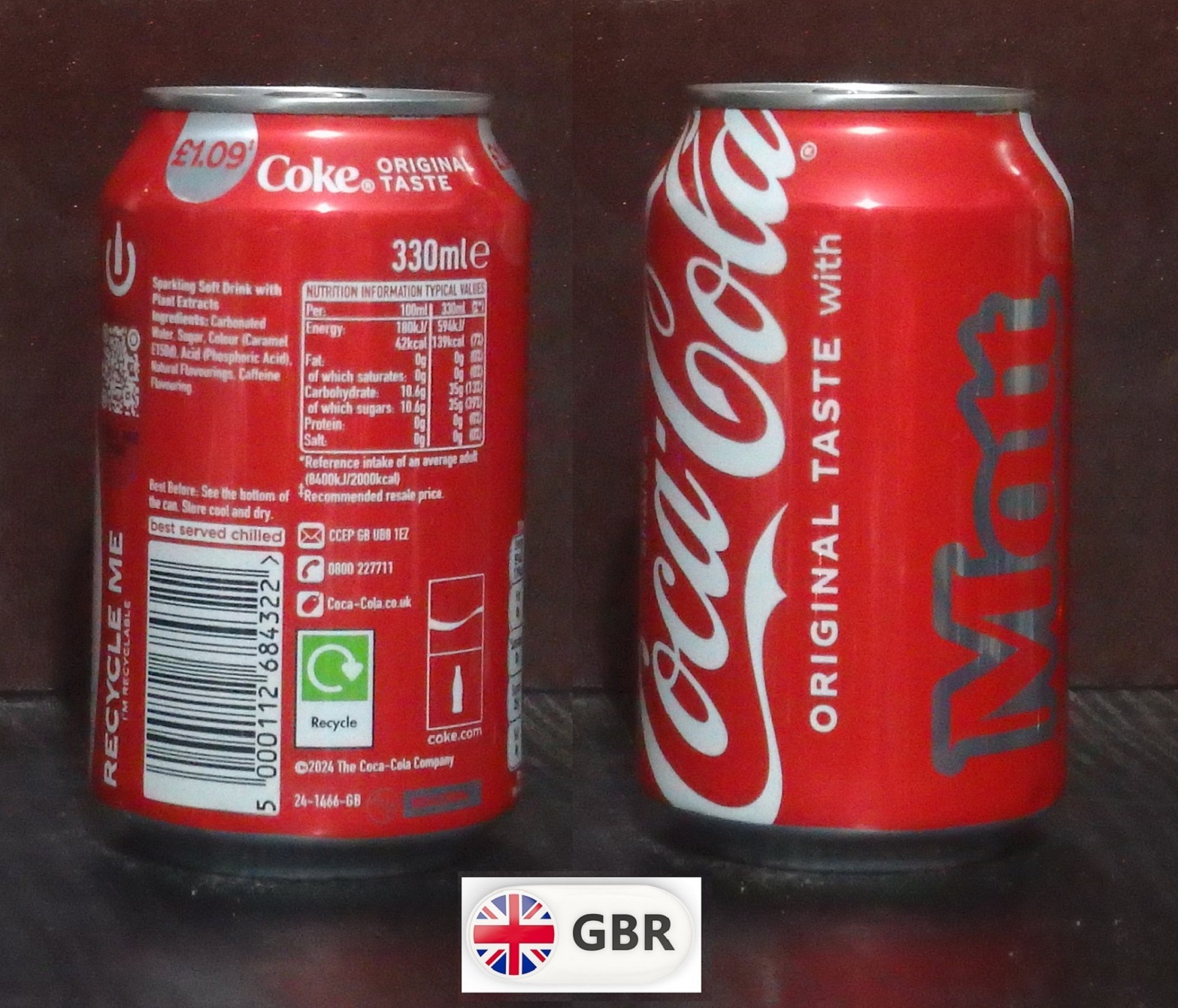 2025 Coke 'Share with Matt £1.09' 330ml