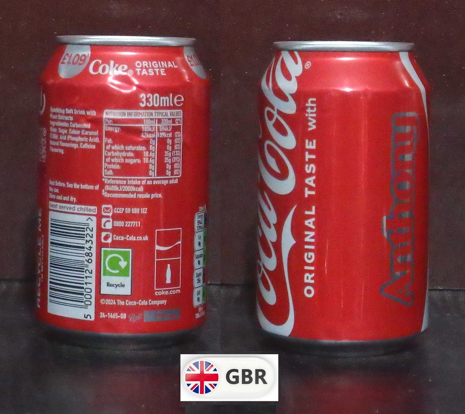 2025 Coke 'Share with Antony £1.09' 330ml
