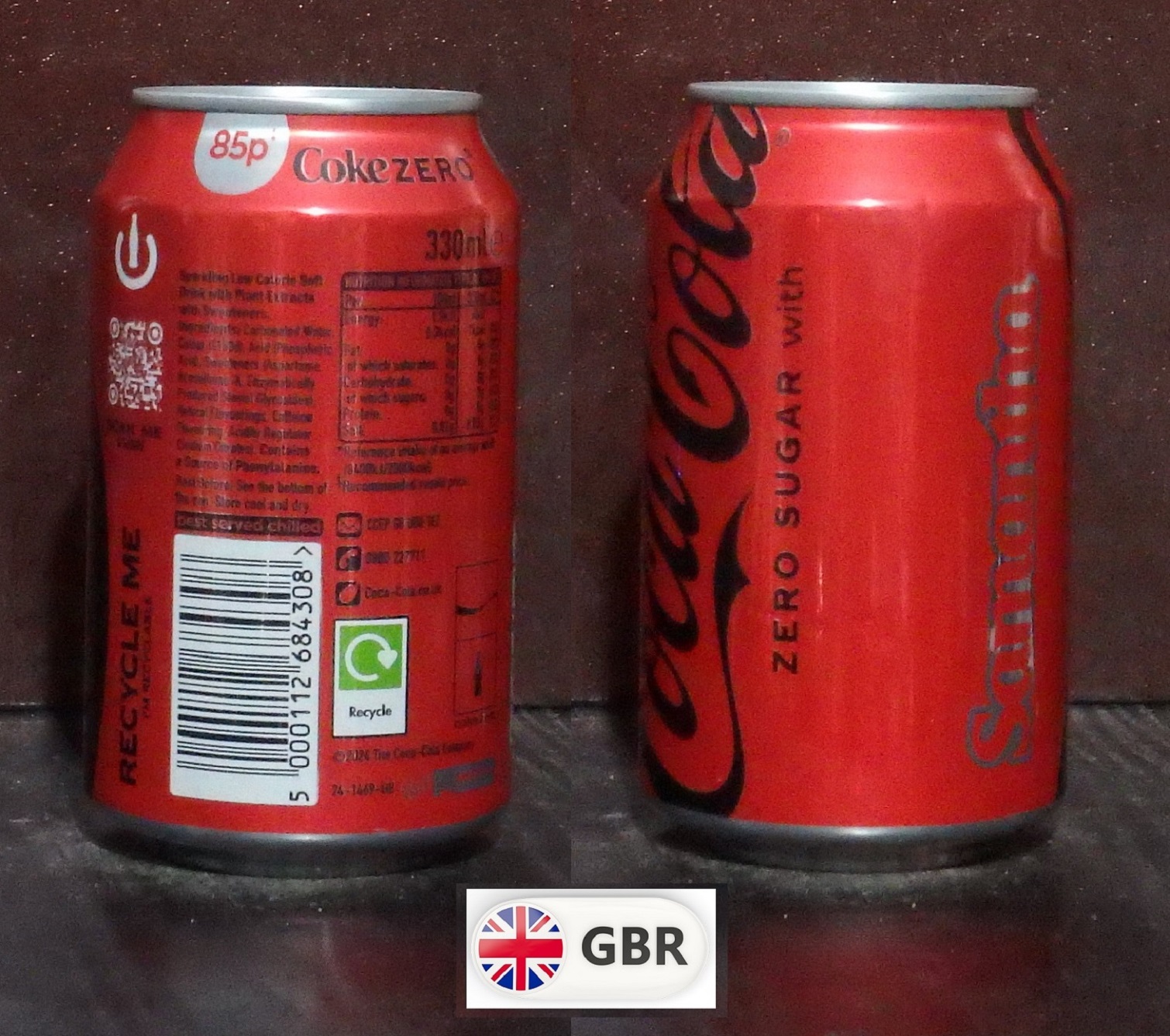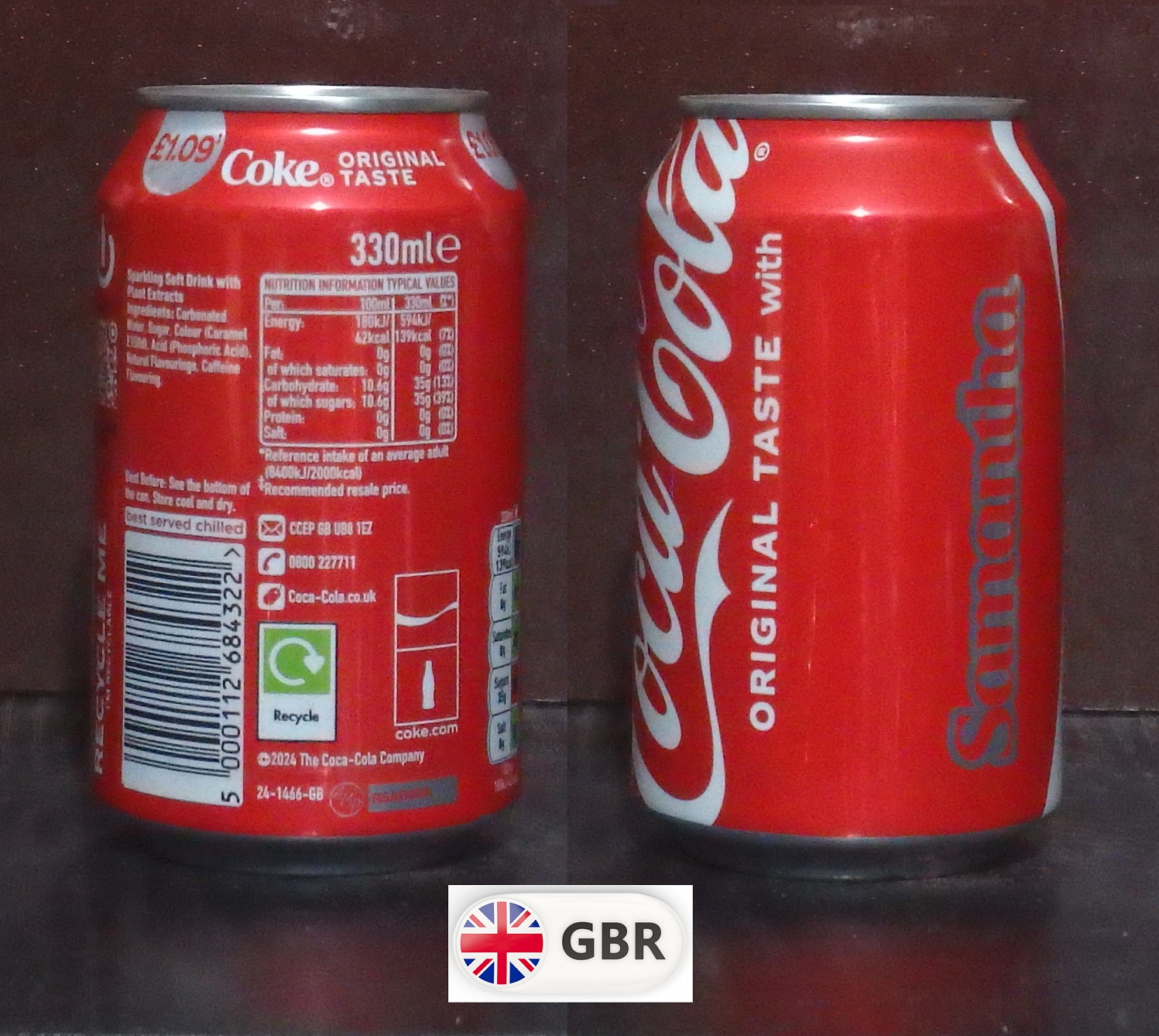 2025 Coke 'Share with Samantha £1.09' 330ml