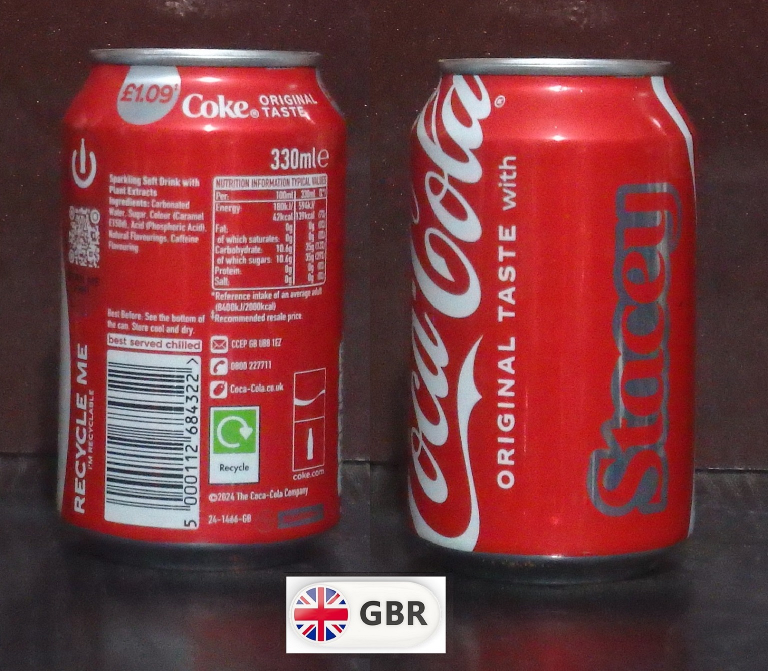 2025 Coke 'Share with Stacey £1.09' 330ml