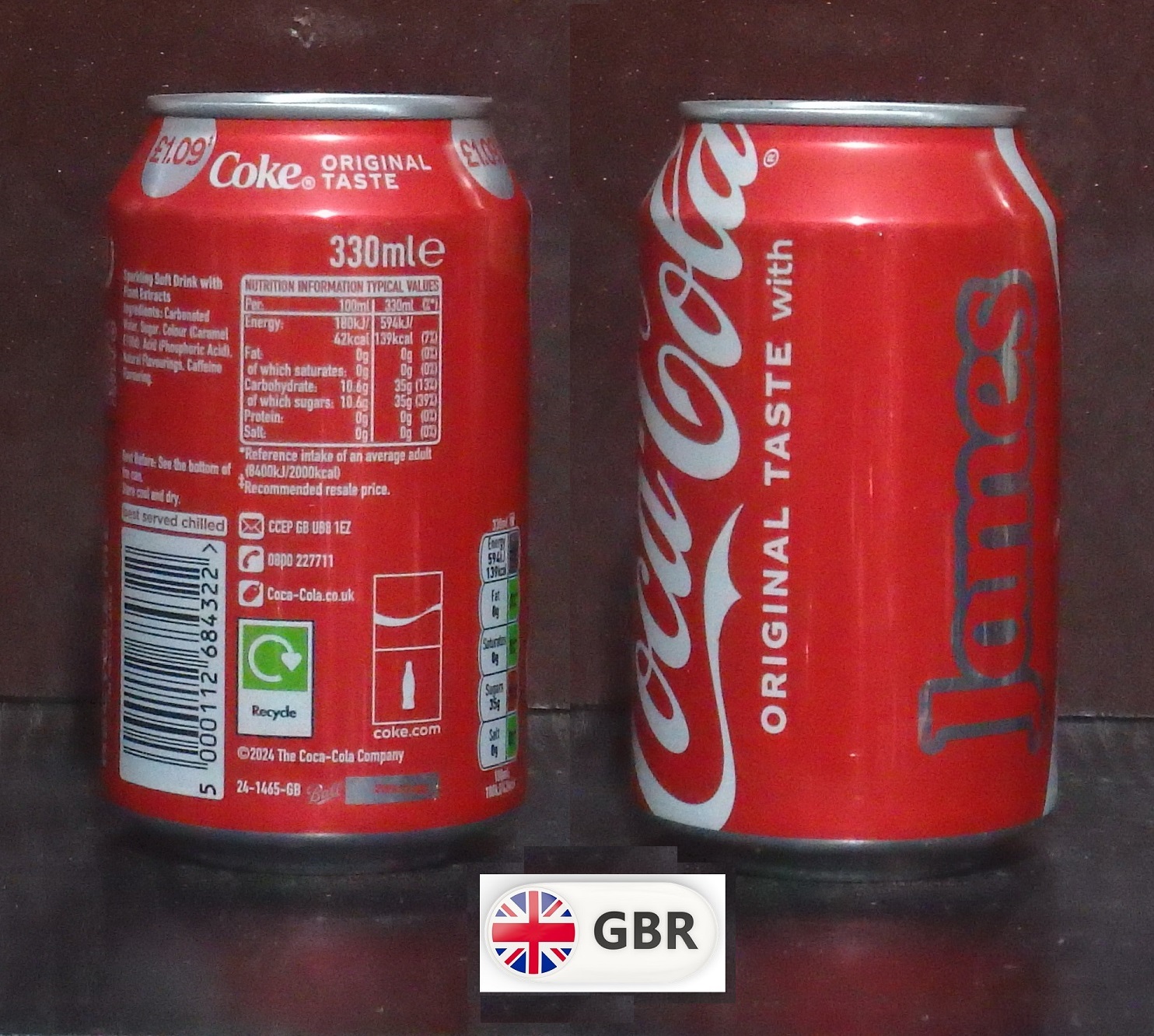 2025 Coke 'Share with James £1.09' 330ml