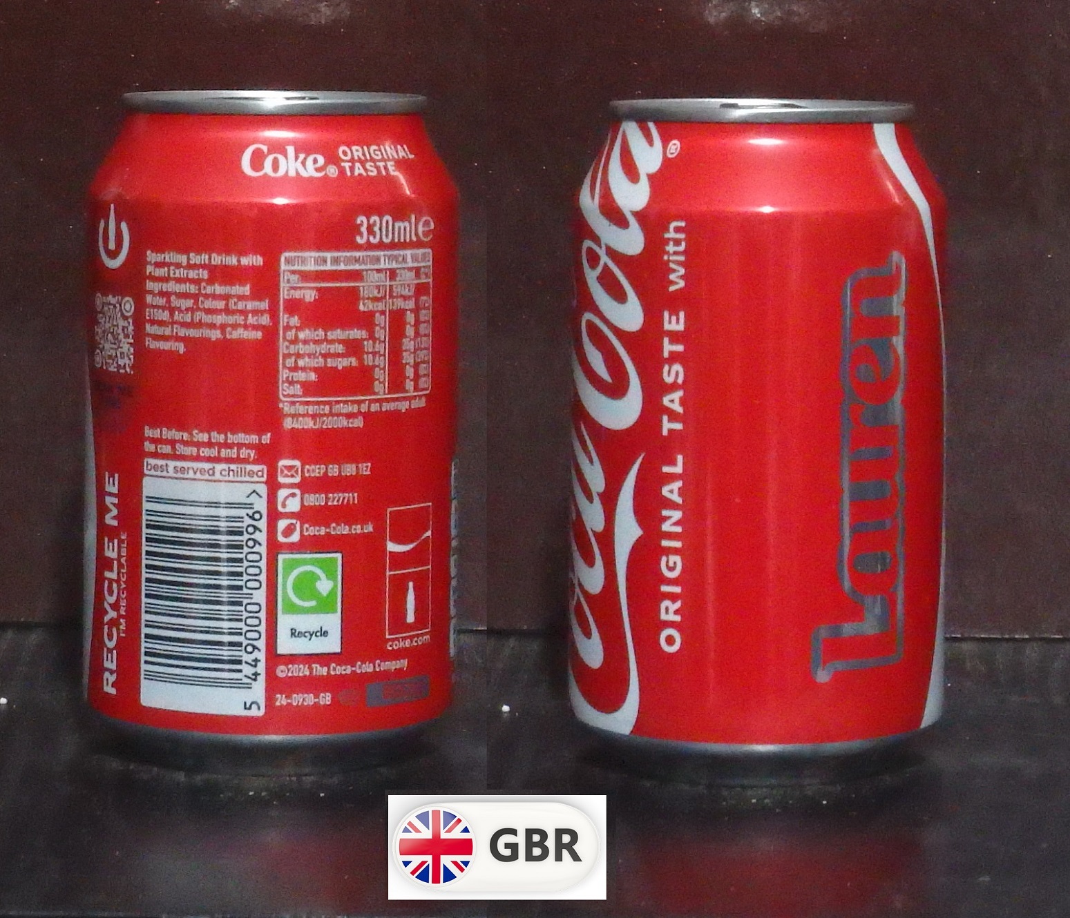 2025 Coke 'Share with Sarah' 330ml (GBR)