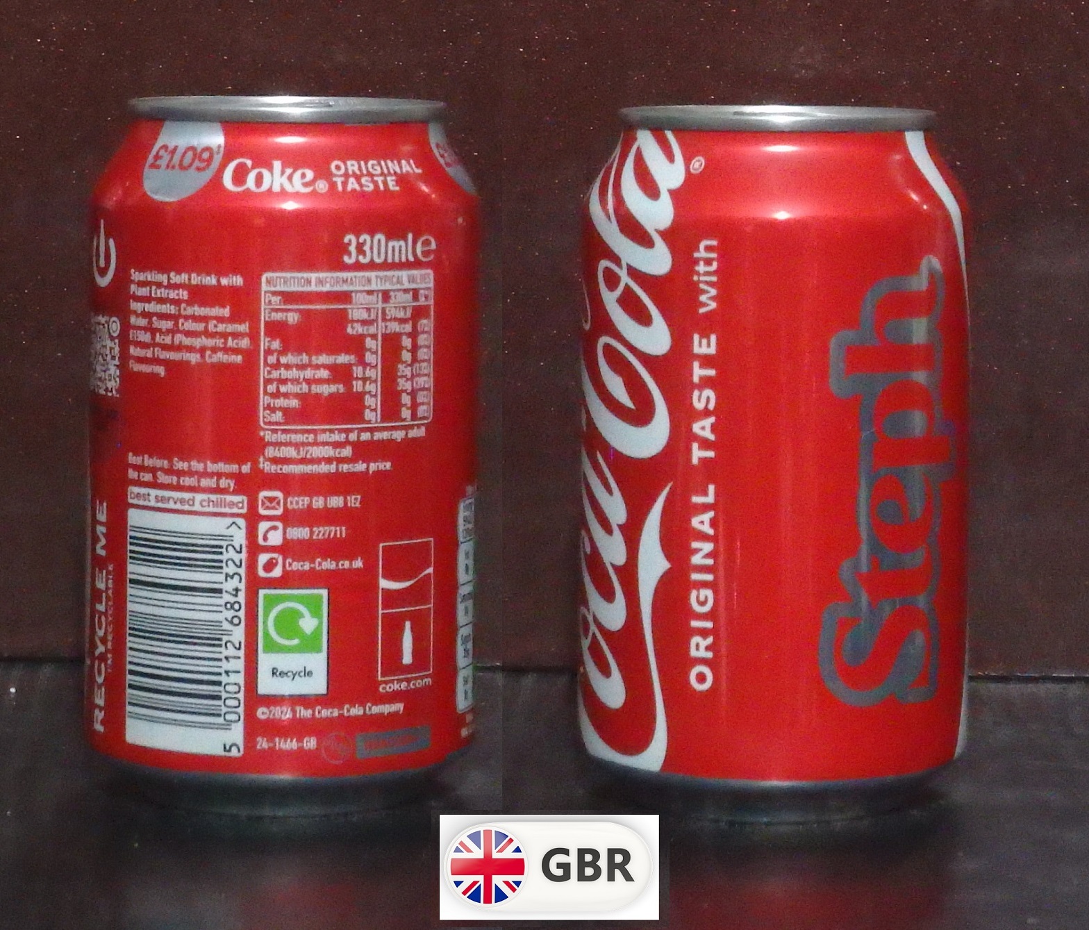 2025 Coke 'Share with Steph £1.09' 330ml