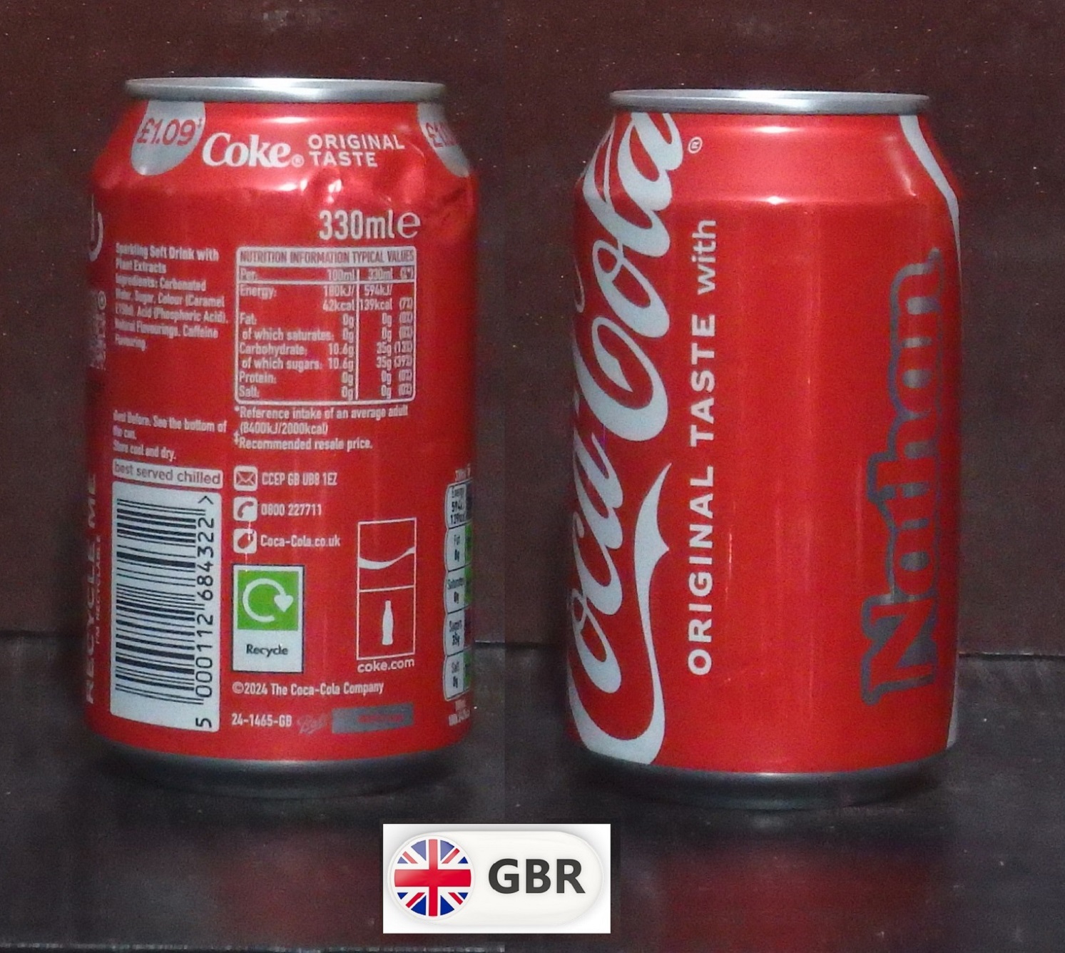 2025 Coke 'Share with Nathan £1.09' 330ml