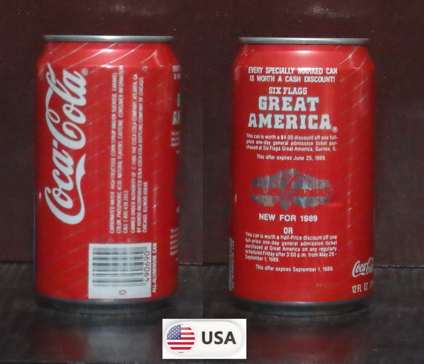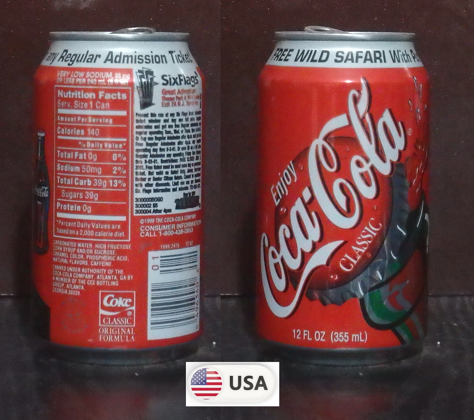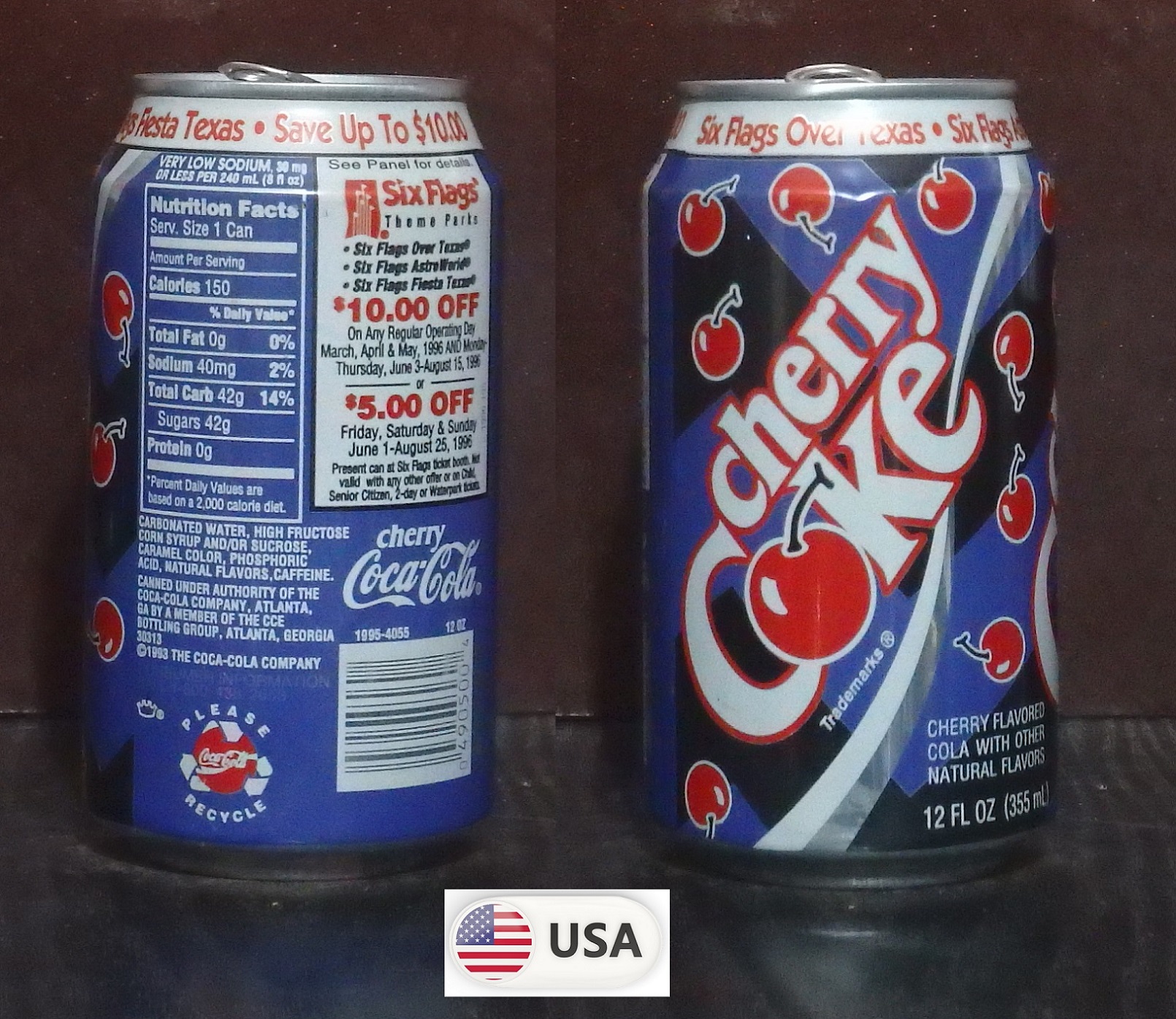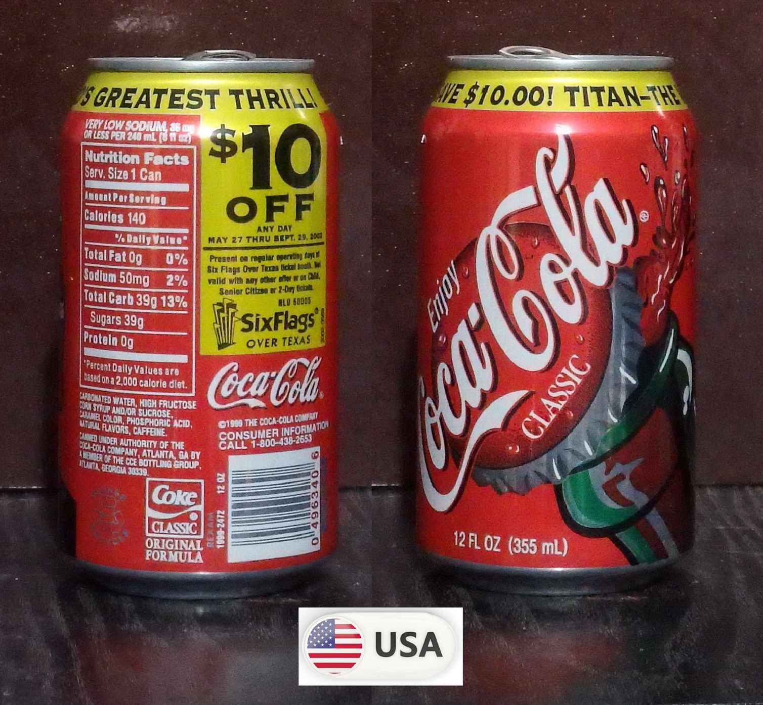 1992 Coke Classic 'Six Flags over Texas - Save $7 Batman Nights' 355ml
