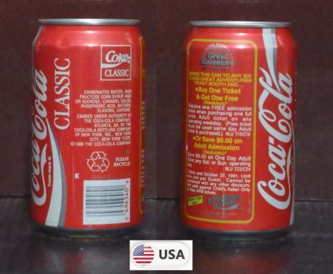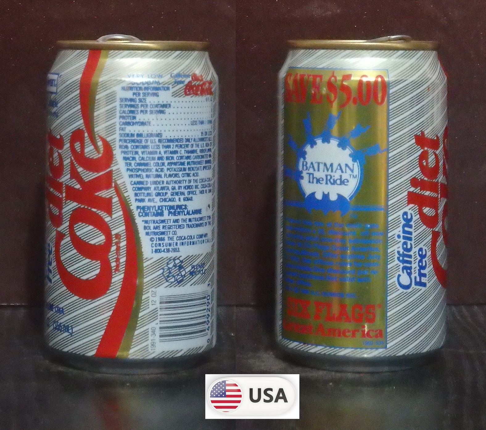 1992 Diet Coke Caffeine Free 'Six Flags Great America - Batman The Ride' 355ml