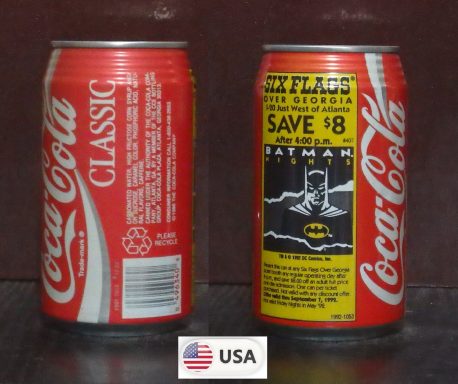 1992 Coke Classic 'Six Flags over Georgia - Save $8 Batman Nights' 355ml